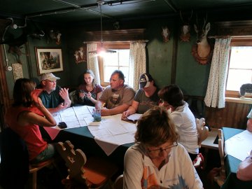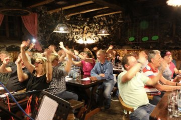 | Mit nur 9 Teilnehmern war die Wanderschar überschaubar, dafür um so fröhlicher. Der Abschluss fand im Gasthaus Ochsen in Hilpertsau statt. Leider war uns der Vollmond verwehrt geblieben, dafür hat er uns auf dem Heimweg nach Weisenbach noch etwas Regen geschickt. |