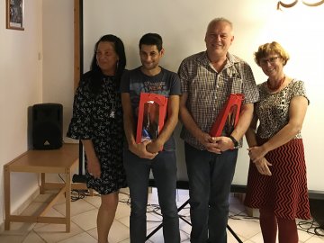| Nach dem Vortrag und der Entlastung des Kassiers berichtete Christian Grüble über die aktuelle Situatuíon der Abteilung Fußball. Bei den Wahlen - unterstützt durch Bürgermeisterstellvertreter Uwe Rothenberger - blieb alles beim "Alten". Geehrt für 25 Jahre FCW wurden Christoph Wunsch und Salvatore Missione. Christoph "Haber" Wunsch lies es sich nicht nehmen sein Gedicht über seine Zeit beim Freizeitclub vorzutragen. |