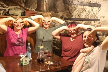 41 Mitglieder (und unser Gast Daniel) verbrachten dann 3 schöne Wandertage im Vinschgau. Der erste Abend im Keller und auf der Terasse war wie immer schön und auch eine neue französische Weinsorte (oscholär) wurde gefunden.