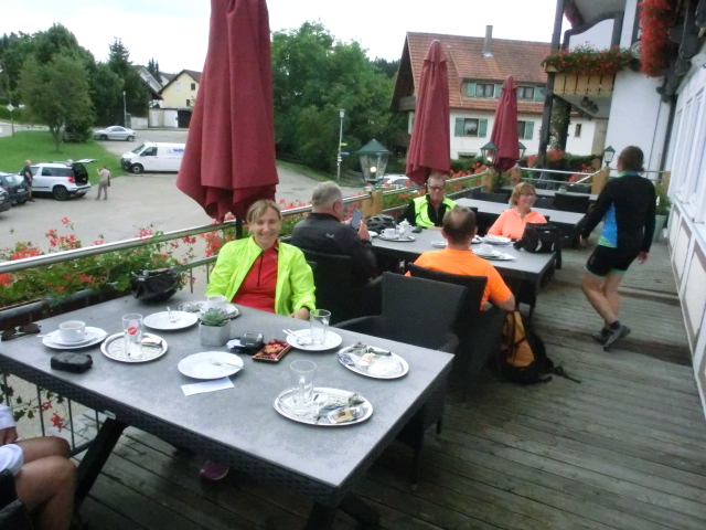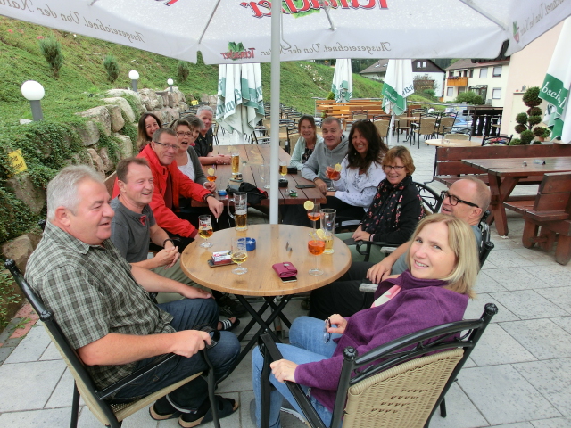 Am Samstag trafen sich bei herrlichem Sonnenschein 17 Radler um 10:45 Uhr in Hilpertsau, Abzweig Reichental, um den Bus zur Schwarzmiss um 11:12 Uhr zu erreichen. Der Radexpress "Knut" brachte die Räder sicher zur Schwarzmisshütte. Über Besenfeld und Poppelmühle ging es weiter zum Übernachtungsdomizil "Löwen" in Enzklösterle. Also viel Zeit für eine Rast im Hotel Sonnenblick in Besenfeld bei Kaffee und Kuchen.