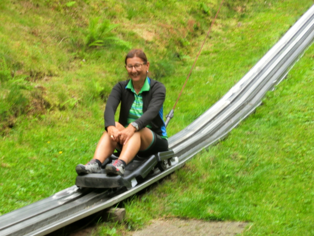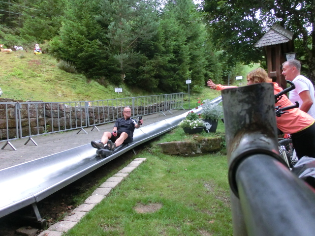 Natürlich durften für die Kinder unter uns eine wilde Abfahrt mit der Poppeltal Bahn nicht fehlen. Im Löwen angekommen, stärkte sich die Gruppe und verbrachte einen geselligen Abend. Tagesziel ca. 30 km, hoch 250m, runter 550m.