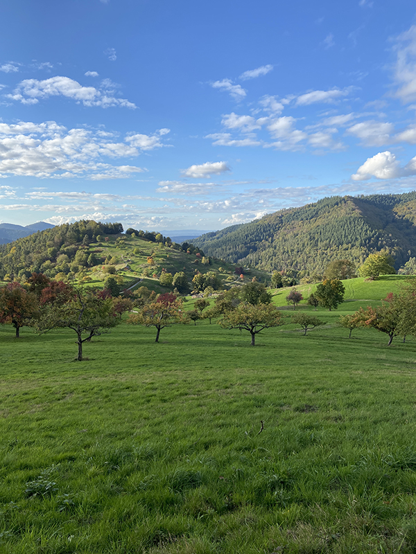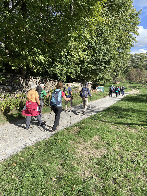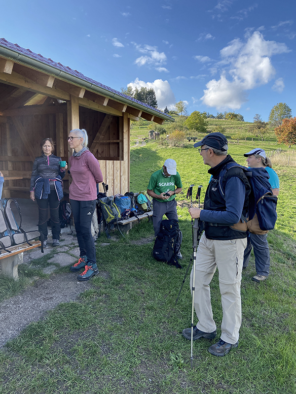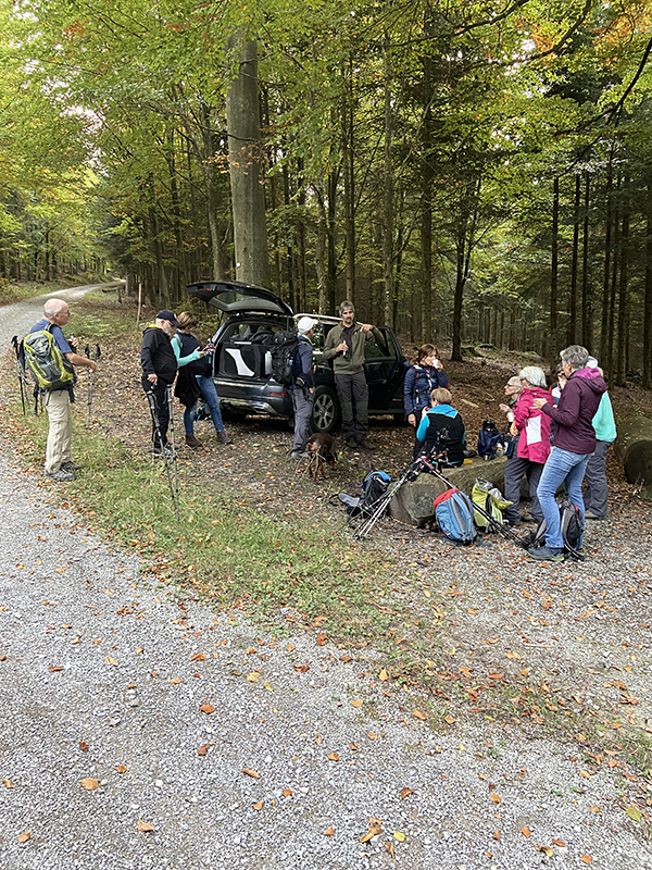 Um 15.00 Uhr starteten im Oktober 13 Wanderfreunde eine Tour zur Hohen Schaar. Bei herrlichem Wetter ging es gemütlich über Kapf und Oberer Schöllkopf Richtung Reichental. Hier war die erste Rast geplant, bevor ein Aufstieg die Gruppe über Beckenfelsen, Homisswiesen bis zum Wetzsteinbrunnen führte.