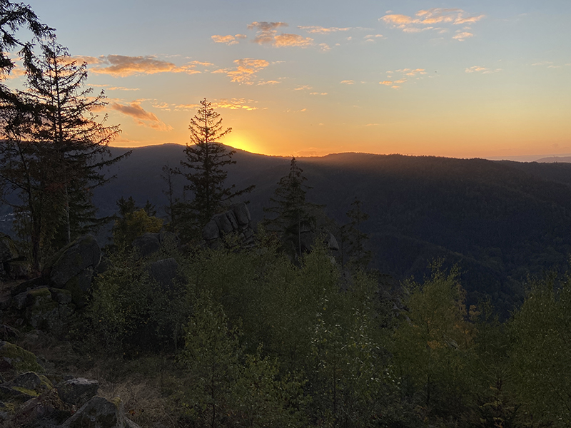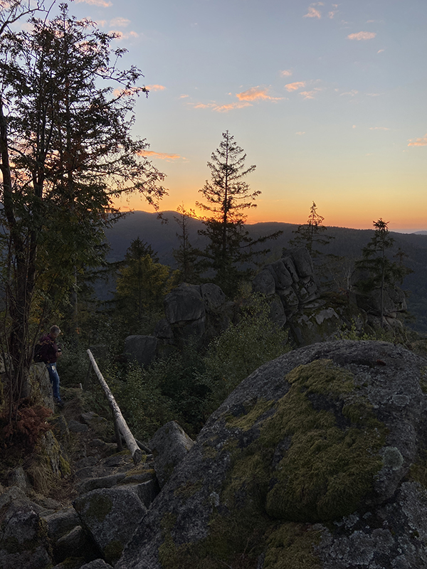 An der Hütte beim Wetzsteinbrunnen angekommen gab es ein zünftiges Vesper. Danach war "Gas geben" anbesagt - der Sonnenuntergang war nicht mehr weit. Die letzten Meter bis zur Hohen Schaar waren schnell erklommen und auf die Minute pünktlich waren die Romantiker zum all abendlichen Spektakel vor Ort.
